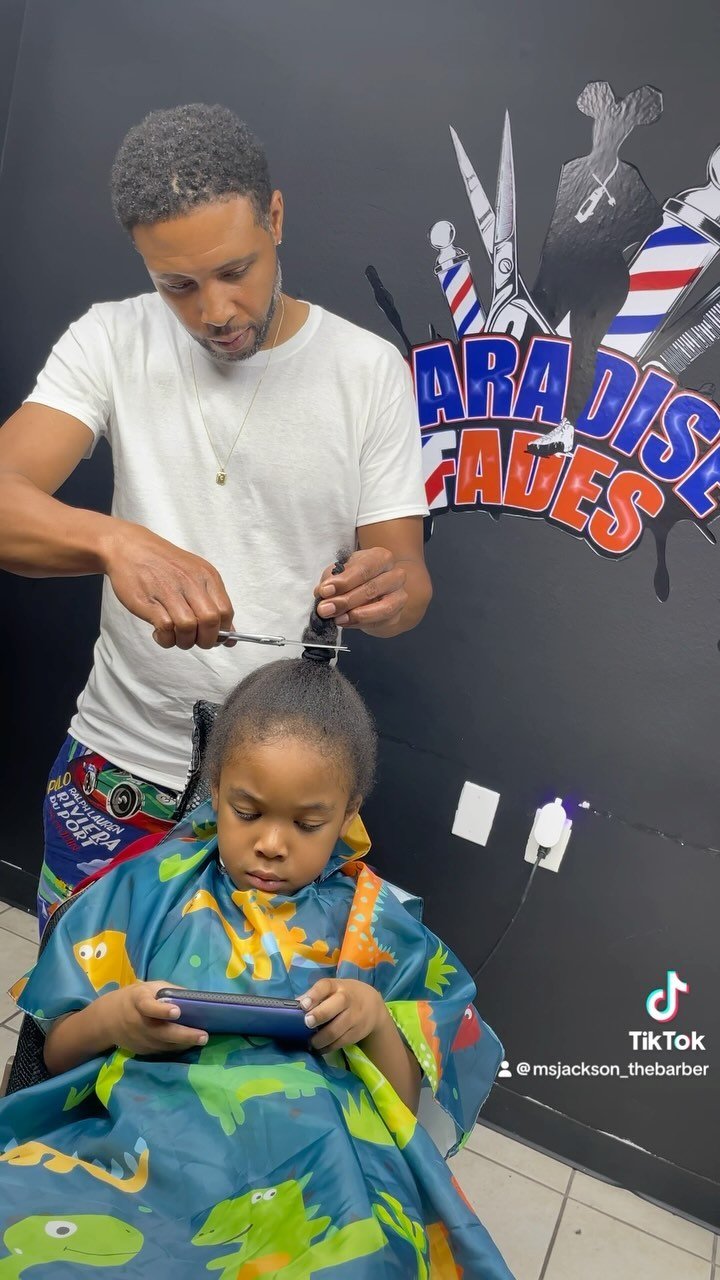 Ms. Jackson started cutting hair at 18, and became a licensed barber by 19. She worked in a barbershop with her parents for 8 years until she decided to take a break. Two years later (at the age of 29), she decided to come back and open her own suite.